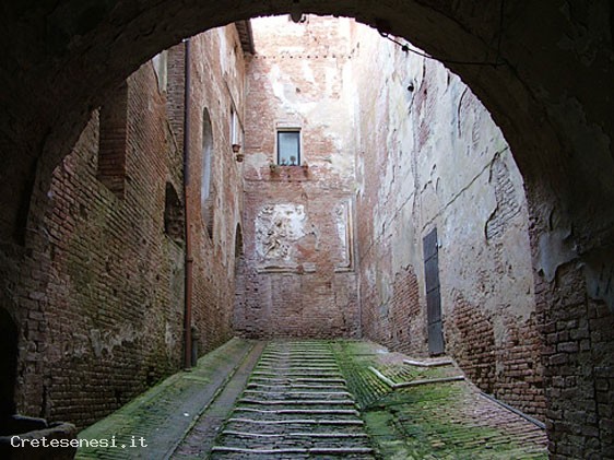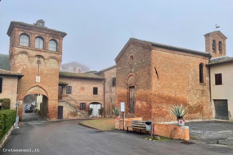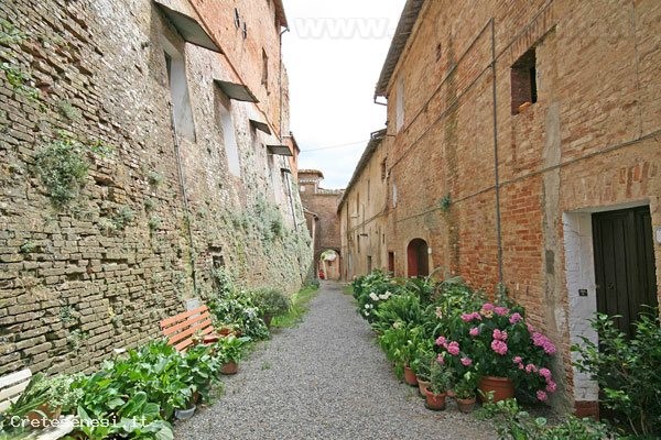 The mighty red brick mass of the Grancia di Cuna makes the complex of buildings easily identifiable. This Grancia is still today the best preserved among the medieval fortified farms, as well as being one of the most interesting architectural complexes of the Sienese countryside and of the whole of Tuscany.