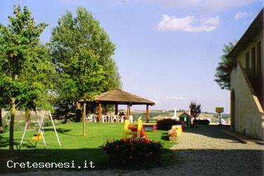 The farm “Saltemnano” is situated on a small hill on the Arbia’s valley. Annual opening. Hospitality in recently restructured apartments, which are endowed with independent heating., bathroom and kitchenette, inside of an ancient building which still keeps the structure of a Medieval fort. Services: swimming pool, wide external equipped space, barbecue, amusement park for children, possibility of walks on foot or by bicycle and of fishing in the private farm’s lake. Products: wine.
