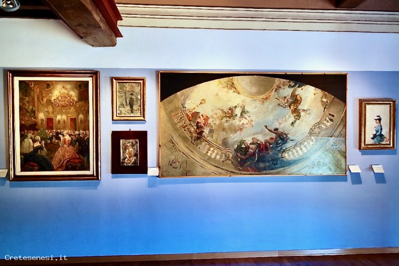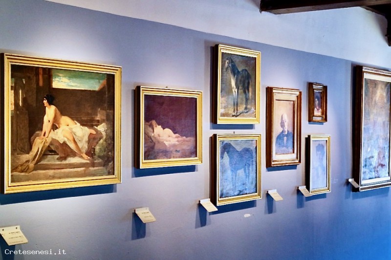 In addition to a large number of paintings by Amos Cassioli, author of the battle scenes of the famous Sala del Risorgimento in Palazzo Pubblico in Siena, you can appreciate some interesting paintings of his son Giuseppe, characterized by a modern trait that favors the color spots over well-defined details.