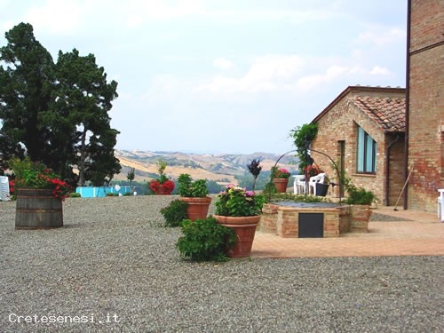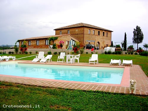 An ancient Tuscan farmhouse of the end of the XVIII century, situated in the heart of Crete Senesi, surrounded by the green of the Tuscan country, in a place rich in history, art and centuries –old traditions, perfumes and flowers which alternate according to the season: this is the farmhouse “ San Lorenzo”, in the province of Siena. The farmhouse is situated on a hill, surrounded by cypresses, where you can gaze at the Crete Senesi and a 360° panorama of the country as far as the eye can see. Thanks to the panoramic position of the Farmhouse “San Lorenzo”, it is possible to catch sight of Montalcino, Mount Amiata, Buonconvento, Chiusure, the area of Monte Oliveto, the Val d’Orcia and the wonderful Siena. What has taken us to recreate in an abandoned farmhouse the life, the emotions and the hopes, has been inspired by strong and far sensations, coming from the country life of the “ Gragnoli” family, which, by this time, goes on from three generations. A real farmhouse where traditions are still alive, like the traditional cooking of “Mamma” Adriana with her wood oven and her hand-made pasta, just as grandmothers did. A real farmhouse for those who are looking for a holiday in contact with nature, where you will be enchanted by gooses and other animals which, walking up and down the farm, lord it.