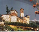Il pomo, l'olivo, la nativita', la chiesa (antica pieve di S. Vittore), il paese (vista panoramica di Rapolano Terme), sono simbolicamente uniti da un ponte che vuol rappresentare il passaggio culturale dal vecchio al nuovo millennio.