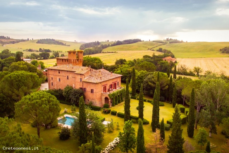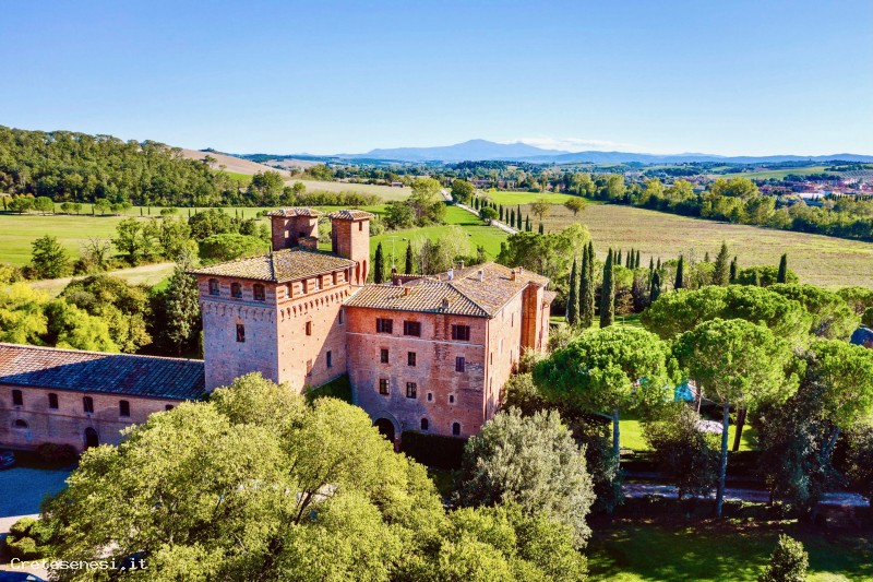 Castle and church of San Fabiano are located on the east bank of the Arbia river.