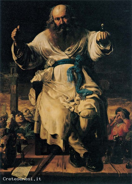 Purchased by the Monte dei Paschi di Siena in 1984, the painting originally belonged to the collection of Florence Gerini: lower left, above the sheet that protrudes from the stage on which sits the charlatan, appear the sign ("In Siena Bernardino Mei Painter ") and the probable date of execution of the canvas (you can imagine will be the year" 1656 "). The unusual iconography and the originality of the subject provide the modern viewer a true slice of customs, traditions and beliefs that were to characterize the social context of Siena - Siena and not only - in the middle of the seventeenth century.