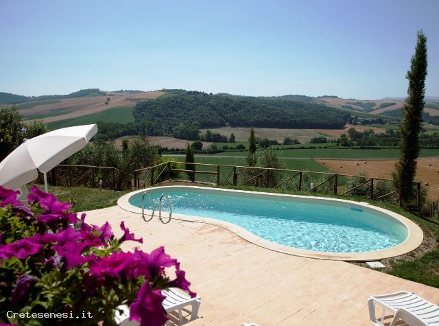 “Olivello” is a typical farmhouse of the country culture which has left the ancient traditions untouched. It is situated in a haven of tranquillity and ephemeral beauties that the nature gave us: geographically, it is situated in the province of Siena, in the middle of Crete Senesi and inside the Natural and Artistic Park of Val d’Orcia; easily reachable from the provincial road which connects: Montalcino, San Giovanni d’Asso, Pienza and the whole Val d’Orcia. The structure is a family enterprise and it offers a wide room with kitchenette, rooms with telephone, TV and independent bathrooms with shower. Outside the farmhouse you could enjoy a large garden, dipped into the nature and in contact with the animals of the near repopulation reserve of wild animals. We also offer the possibility to take part in the agricultural works and in the attending of the farmyard animals. The apartment comes from the restructuring of an old stable which faces the typical landscapes of the province of Siena and the Crete Senesi, with a wide garden from which you can gaze at theme in complete relaxation. The inside of the farm is really well-kept and it shows some particulars characteristics like: timber ceiling, original floors of the old stables, block-wood doors, built following the ancient methods. Composition: 1 living/dining room with kitchenette, 2 double bedrooms with independent bathroom, possibility of additional beds in the rooms, free loan swimming pool.