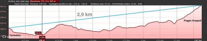 Torrentino was a fairly large castle, strategically located near an important ford of the Ombrone river and a mill. There is attested in 1178 the presence of the Church of S. Angelo, unfortunately already disappeared in 1214.