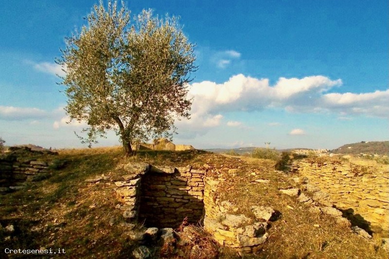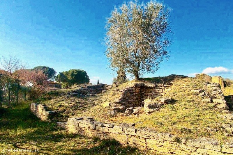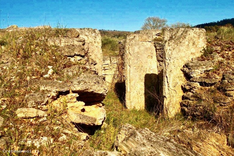 While doing the burglary work, immediately under the grass layer he came across squared travertine slabs. The son, who attended elementary school in Asciano, told the matter to maestro Bruno Marignani who, associating the discovery with the fact that the place had always been known as "the hillock of the dead", got in touch with the Carabinieri and, together he made an initial inspection of them.