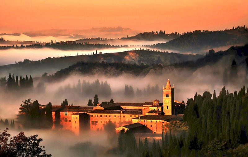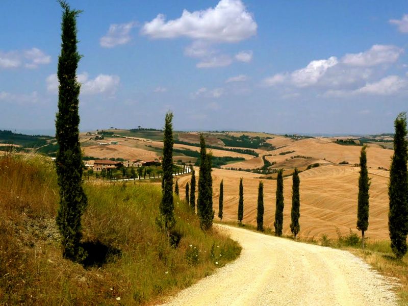 Questo lungo percorso, da effettuare in auto, moto o bici, è stato studiato per ospiti che si trovano a soggiornare al castello di Modanella. I luoghi che ci permette di raggiungere sono tutti quelli di maggiore interesse nelle immediate vicinanze. Considerato il doppio passaggio da Modanella, il percorso può essere effettuato un una sola volta o in due tappe separate. Le località e i paesaggi che si possono ammirare hanno specificità diverse, ma tutte di grande valore paesaggistico e artistico.