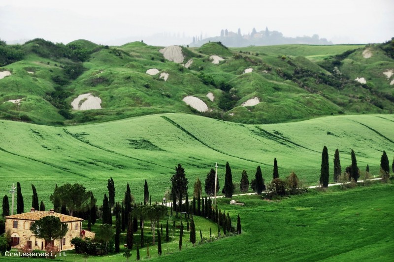 Oltre a trovarsi in mezzo a questo strano paesaggio di cucuzzoli si ha la possibilità di trovarsi su una terrazza naturale: affacciata verso nord su Siena e verso sud-est sulle dolci curve di terra che contraddistinguonole Crete Senesi.