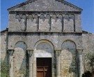 La sua è facciata è organizzata su due ordini: archetti e semicolonne nella parte superiore e ampie arcate cieche nella parte inferiore. Il suo disegno si ispira a modelli pisani interpretati in chiave lombarda.