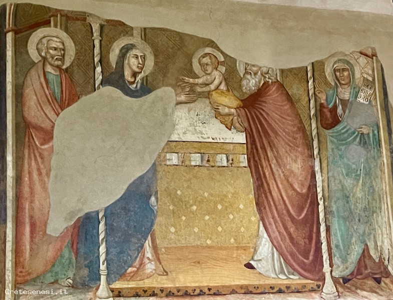 L'interno conserva alcuni resti di affreschi trecenteschi, tra cui: