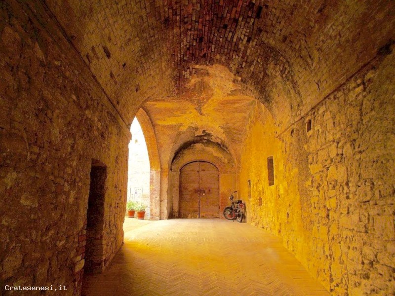 Accanto alla Porta di San Lorenzo s'innalza una vasta costruzione piuttosto asimmetrica che, prima di essere trasformata in granaio fortificato dell'Ospedale di Santa Maria della Scala di Siena, fu palazzo imperiale.