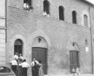 In verità, quando si parla di questo palazzo, va considerato anche quello adiacente, realizzato con la stessa struttura architetturale e apparentemente di epoca precedente. Quest'ultimo conserva un accesso carrabile che conduce nel retro dei due palazzi, dove ancora oggi esiste una fonte per abbeverare gli animali. Questo fa presupporre che nei secoli, il palazzo abbia sempre svolto il ruolo di importante Stazione di Posta, per coloro che transitavano lungo la Lauretana.