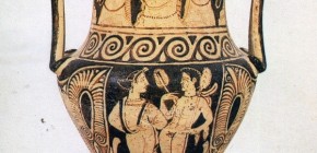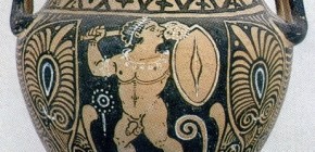 La kelebe è stata attribuita al Pittore di Asciano, dotato ceramografo della cerchi...