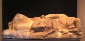 La scultura, recuperata in numerosi frammenti durante gli scavi degli anni Sessanta press...