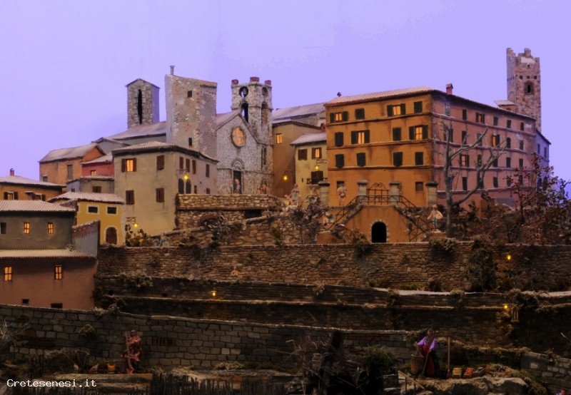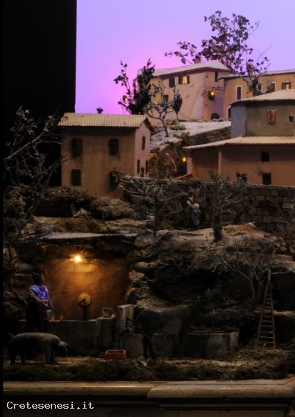 Riproduzione in scala 1:10 su palco di mt. 4x4 del borgo antico di Armaiolo (frazione di rapolano Terme) con la fonte lavatoia e l'abbeveratoio: strutture che oggi non esistono più. Una particolarità: la natività è costituita da statue di 50 cm. del 1700, restaurate per l'occasione dal Gruppo Atisti del Presepe Materiali usati: cartone, polistirolo, stucchi, gessi e colori acrilici.