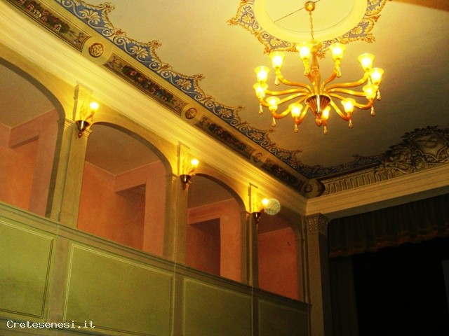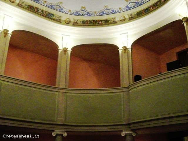 Verso la metà dell’800 la “solita stanza” venne trasformata in un teatro di stile neo-classico: un solo ordine di palchetti a ferro di cavallo, sopra la platea. Questo intervento lo si deve probabilmente alla signora Elena Castellani, moglie del Cavaliere Federico, che promosse l’iniziativa in concomitanza con il restauro del Teatro Pinsuti di Sinalunga, suo paese d’origine.