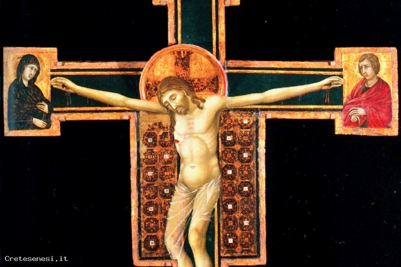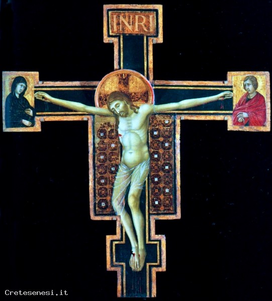 Questo Crocifisso è una croce dipinta a tempera su tavola realizzata tra il 1310 e il 1315 e conservata nella Galleria Nazionale di Siena. Si tratta di una rappresentazione del Christus patiens , il Cristo sofferente e rassegnato, in stile bizantino. Solo due figure sacre accompagnano Cristo sulla croce: Maria e Giovanni, ciascuno nel suo tabellone a sinistra e a destra del patibulum.