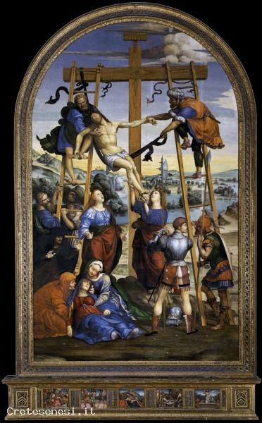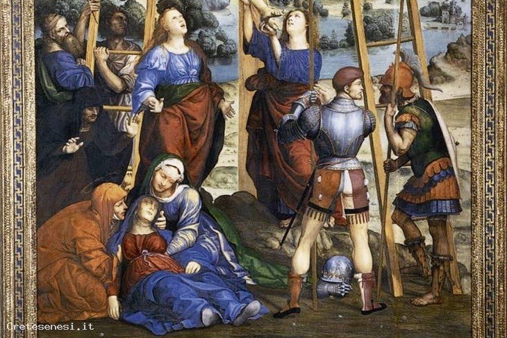 Dopo essere stato a Roma nel 1508, il pittore vercellese (ma senese d'adozione) Giovanni Antonio Bazzi detto il Sodoma, avrebbe cambiato in modo abbastanza netto il suo stile: questo perché a Roma conobbe l'arte di Raffaello, che fecero mitigare al Sodoma tutta quell'asprezza che aveva caratterizzato le sue realizzazioni precedenti e che derivava dalla passione per l'arte di Luca Signorelli.