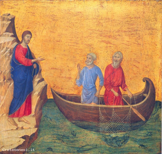 "La vocazione di Pietro e Andrea" è un dipinto autografo di Duccio di Buoninsegna appartenente alla predella della Maestà del Duomo di Siena, realizzato con tecnica a tempera su tavola nel 1308-11, misura 43,5 x 46 cm. ed è custodito ad Washington nella National Gallery of Art.Il modello della presente composizione è relativo a quello bizantino. La novità sta nell'intensa corrispondenza dei personaggi che, pur isolati nei loro singoli atteggiamenti, conferiscono all'ambiente che li circonda la travolgente "atmosfera" del richiamo di Cristo.