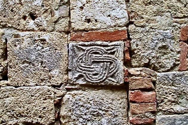 Sul lato occidentale si trova inoltre un blocco di travertino con sopra scolpita una forma stilizzata di due anelli ovali che s’intrecciano, immagine tipica dell’epoca longobarda. Alcune pietre presentano lavorazioni e scanalature in quanto facenti parte delle decorazioni della chiesa originaria.