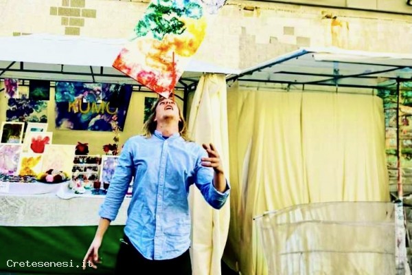 Un giocoliere e artista di strada che porta la sua arte in teatro raccontando la sua Storia.